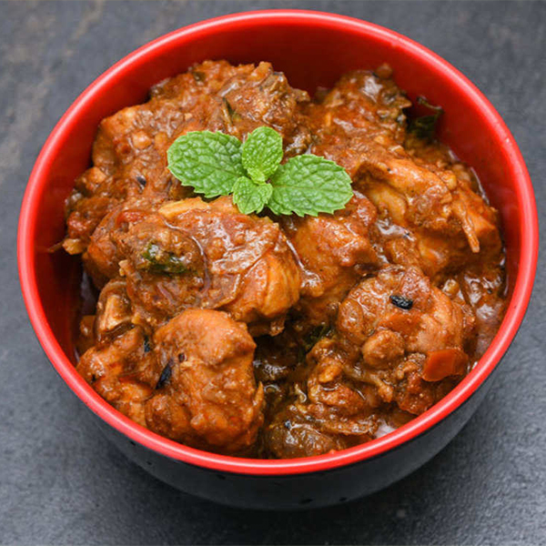 Chicken with tomato, capsicum, onion with Indian spices in khada masala in tomato brown gravy.